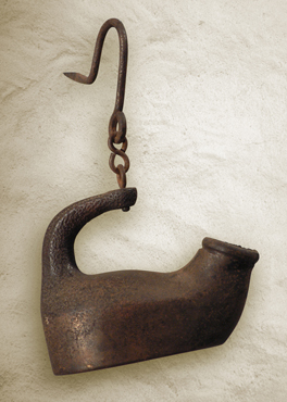 Diese kleinen, aus Blech oder geschmiedetem Eisen hergestellten Talg- oder Öllampen waren im 17. bis 19. Jahrhundert sehr beliebt.