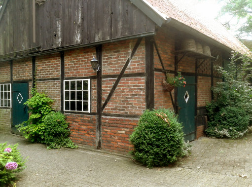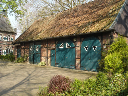 Direkt hinter dem Holzschuppen verläuft die Gräfte.